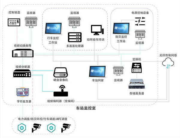 闭路电视监控系统(CCTV):CCTV闭路电视监控系统由安防网络子系统、安防集成管理子系统、综合电视监控子系统、门禁子系统、车辆段/停车场和高架区间入侵探测子系统、以及车站紧急告警子系统等构成。实现对重点区域的出入管理、登记、实时视频监控和入侵探测等功能。