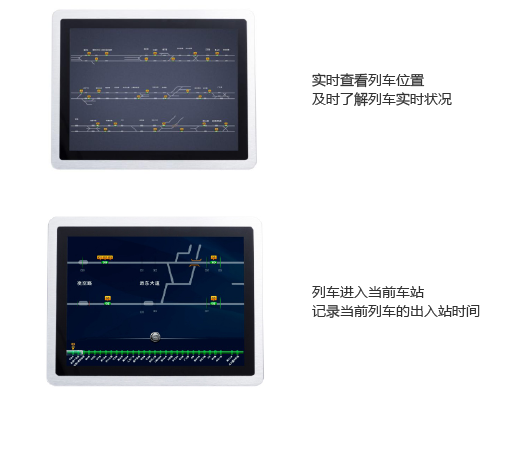 工业平板电脑作为信息监控平台,配有高分辨率显示屏,内嵌于检测主机,可将工作信息传送给操作员和信息安全系统。因铁路系统运行中的无线通讯比较普遍,该产品可工作在大功率射频系统环境下。 在轨道交通系统中振动和冲击是不可避免的,因此,优秀的防震和抗冲击性对轨道系统来说必不可少。具有防水性能和更加强固可靠的工业平板电脑对有效对抗震动和冲击,保证系统安全、可靠运行。 轨道车辆常在多变的温度环境下运行,这就意味着所有的工业平板电脑必须支持宽工作温度。同时,电压也面临着车辆启动或停止时面临着电压突然冲击的挑战,因此,所有设备必须支持宽电源输入。无风扇设计对于应用在严苛环境下的工业电脑同样是必须的,其可有效减少灰尘进入,避免因此引发的系统故障。 浩腾17寸平板电脑是专为轨道车辆应用量身定制的电容触摸式工业平板电脑(,满足轨道车辆应用的苛刻需求,其无风扇设计、良好的抗振、抗冲击能力,可保证在狭小的空间内仍保持安全、可靠、高效运行,可以满足轨道车辆应用中的所有严苛需求。