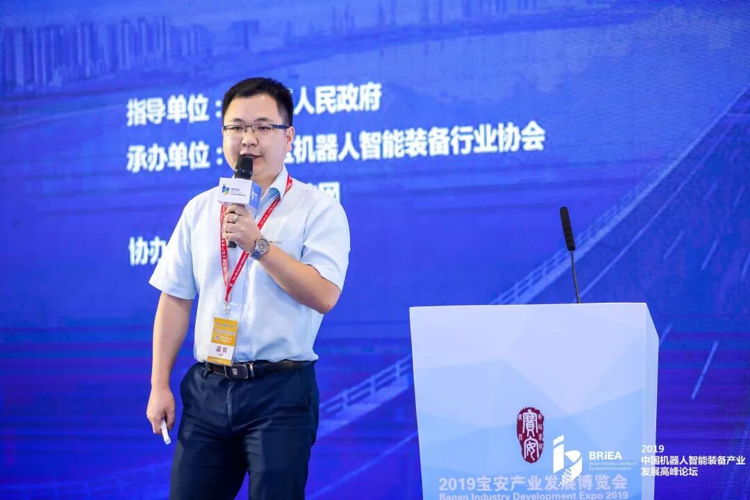 宝安区工信局副局长杨辉在发表致辞时讲道:“借助于2019中国机器人智能装备产业发展高峰论坛,我们希望为大家提供一个在新一代信息技术新形势下,机器人智能装备行业创新与发展的交流互动平台,共同探讨机器人智能装备技术对智能制造的新型应用,必将对推动宝安区机器人智能装备行业水平起到积极作用。在宝安打造“社会主义先行示范区”的湾区智创高地,建设世界级先进制造业产业集群的体系进程中,需要大家一起贡献属于我们的力量。政府助推、协会主导、市场驱动、产学研资支撑的四位一体的协同发展模式将会为宝安区机器人智能装备行业的发展形成一个很好的推动作用。让我们一起‘同心前行,智造宝安’。”